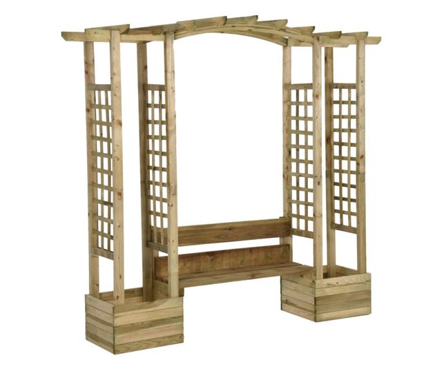 Πέργκολα Κήπου Με Πάγκο & Γλάστρες από Εμποτισμένο Μασίφ Πεύκο
