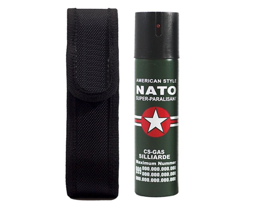 Spray Αυτοάμυνας NATO με αποτέλεσμα που διαρκεί έως και επτά ώρες, ανάλογα με την ένταση εφαρμογής. Η ουσία είναι μη τοξική εάν εφαρμόζεται σύμφωνα με τις οδηγίες, προκαλώντας μόνιμη βλάβη και έχει εγκριθεί από τις αρχές. Αυτό το σπρέι δεν απαιτεί άδεια.