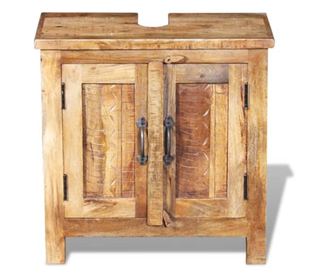 Αυτό το σετ μπάνιου είναι συμπαγές, σταθερό και ανθεκτικό, καθώς τόσο το έπιπλο μπάνιου όσο και το πλαίσιο του καθρέφτη είναι κατασκευασμένα από μασίφ ξύλο μάνγκο. Κάθε έπιπλο είναι μοναδικό και διαφέρει από τα άλλα, καθώς είναι χειροποίητο από ξύλο.