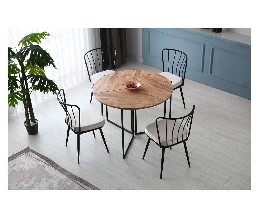 Ένα μοντέρνο στρογγυλό τραπέζι τραπεζαρίας από μοριοσανίδα με επίστρωση μελαμίνης. Διαθέτει μεταλλικά πόδια. Η επιφάνεια του τραπεζιού από μελαμίνη είναι ανθεκτική στην υγρασία και τους λεκέδες, καθιστώντας την εύκολη στο καθάρισμα. Αυτό το τραπέζι είναι ιδανικό για συγκεντρώσεις με την οικογένεια και τους φίλους. Διαστάσεις: 100 x 72 x 100 εκ. Αντοχή βάρους: 19 κ.