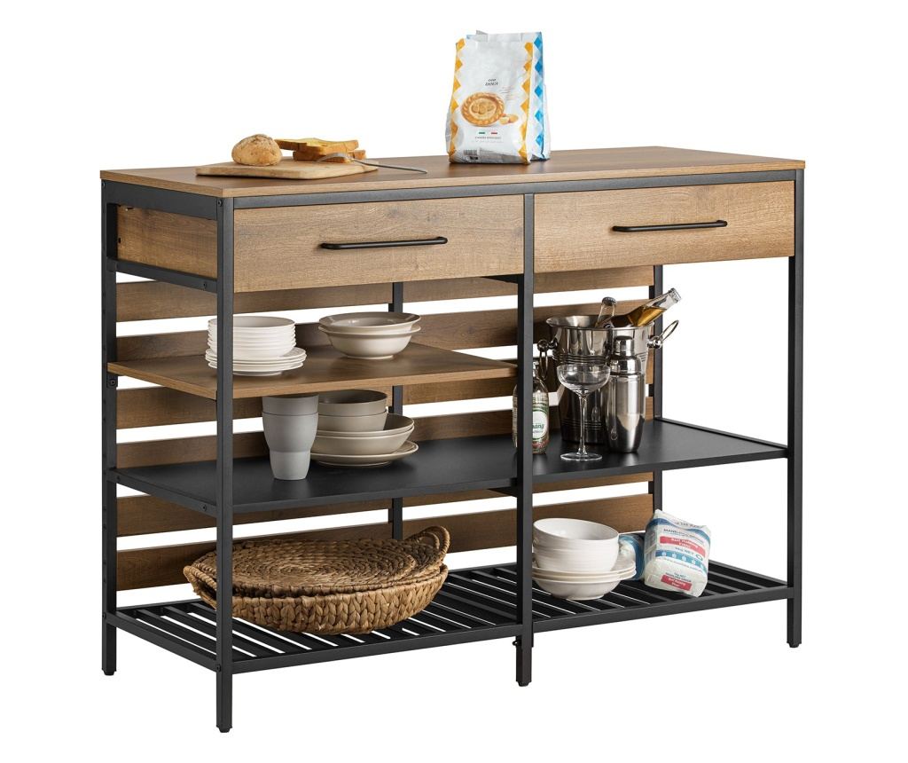 - Kleur: Vintage - Materiaal: spaanplaat, metaal - Afmetingen product: Lengte * hoogte * breedte: ca. 120x91x45cm - Afmetingen verpakking: Verpakking A: 120x53x17cm; Verpakking B: 73x51x14cm - Gewicht: ongeveer 41,5kg - Belastbaarheid: tot 105kgOmvang levering: