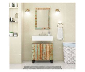 - Μασίφ Ανακυκλωμένο Ξύλο: Αυτό το ντουλάπι είναι κατασκευασμένο από μασίφ ανακυκλωμένο ξύλο σε συνδυασμό με επεξεργασμένο ξύλο. Το μασίφ ανακυκλωμένο ξύλο αποτελείται από επαναχρησιμοποιημένη ξυλεία όπως teak, ξύλο μάνγκο, πεύκο και οξιά. Αυτά τα υλικά ανακυκλώνονται από παλιά κτίρια όπως εργοστάσια, αίθουσες και βάρκες.