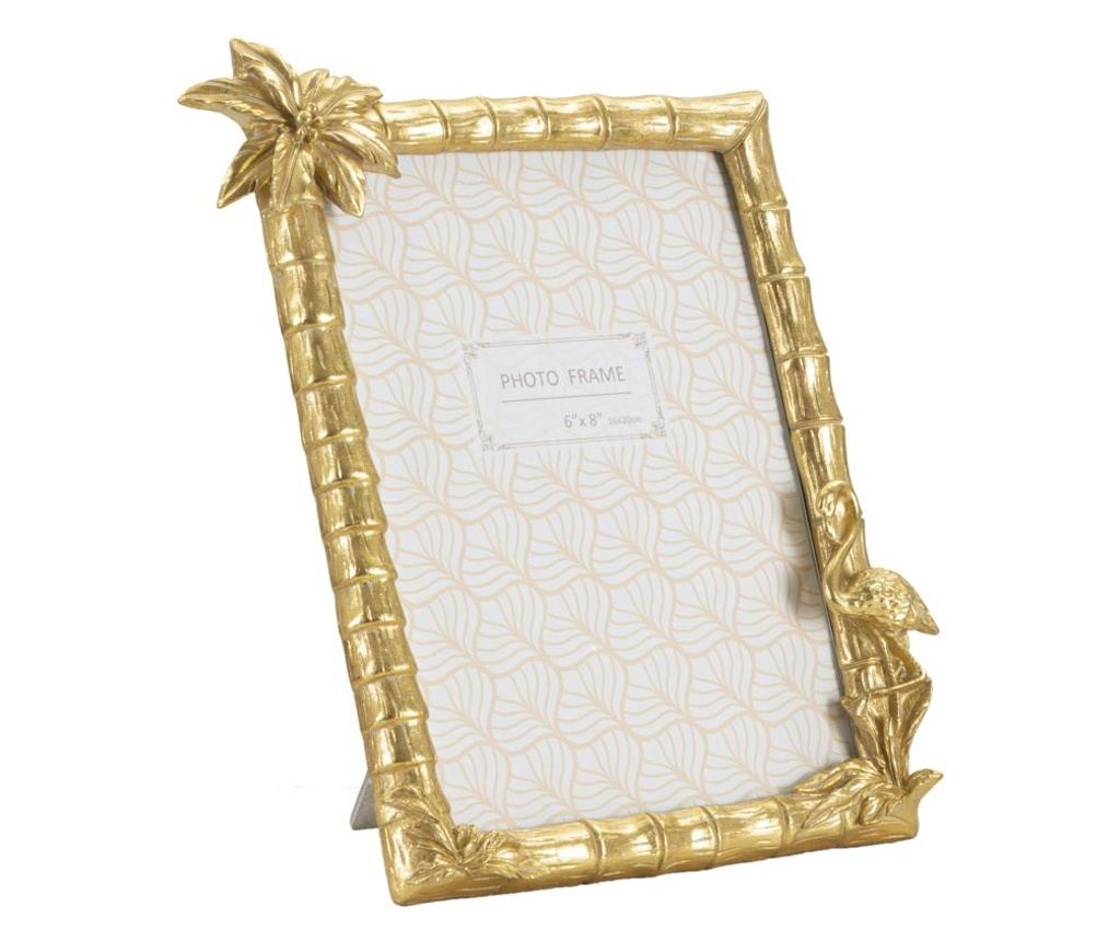 Ορθογώνιο ελεύθερο πλαίσιο από ρητίνη με σχέδιο που θυμίζει καλάμια μπαμπού και διακοσμημένο με λουλούδι και φλαμίνγκο. Διαστάσεις φωτογραφίας 15x20 εκ.
