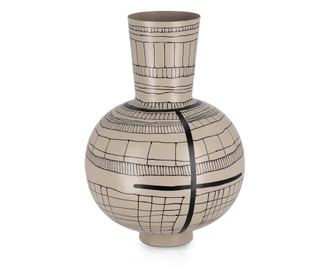Siva Μπεζ Γυάλινο και Μαύρο Μεταλλικό Βάζο Λουλουδιών Ø30x43h
