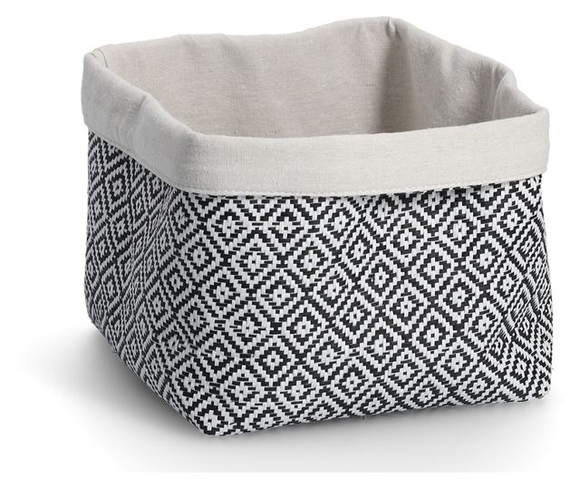 Καλάθι αποθήκευσης σε σχέδιο μωσαϊκό, κατασκευασμένο από βαμβάκι-χαρτί σε μαύρο και λευκό χρώμα. Διαστάσεις περίπου 28 x 28 x 25-28 εκ.