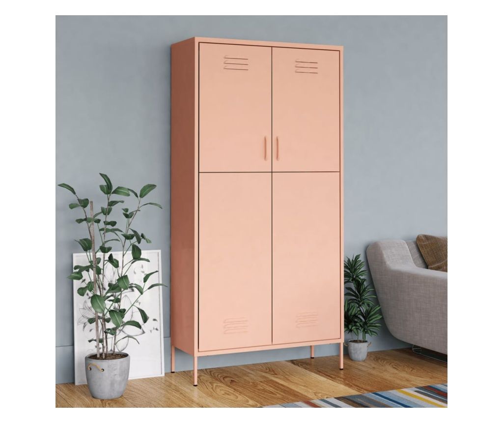 Ντουλάπα, Ροζ, 90x50x180 εκ., Ατσάλι