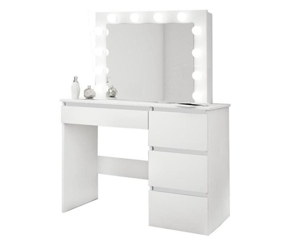 Λευκό Μπουτουάρ/Τραπέζι Μακιγιάζ με Καθρέφτη και LED, Irina, 94x43x141 εκ.