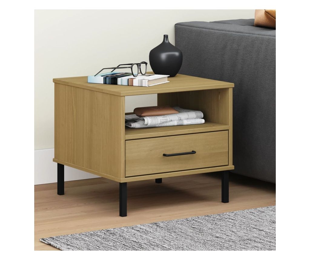 Κομοδίνο OSLO με Μεταλλικά Πόδια, Καφέ, Μασίφ Ξύλο Πεύκου
