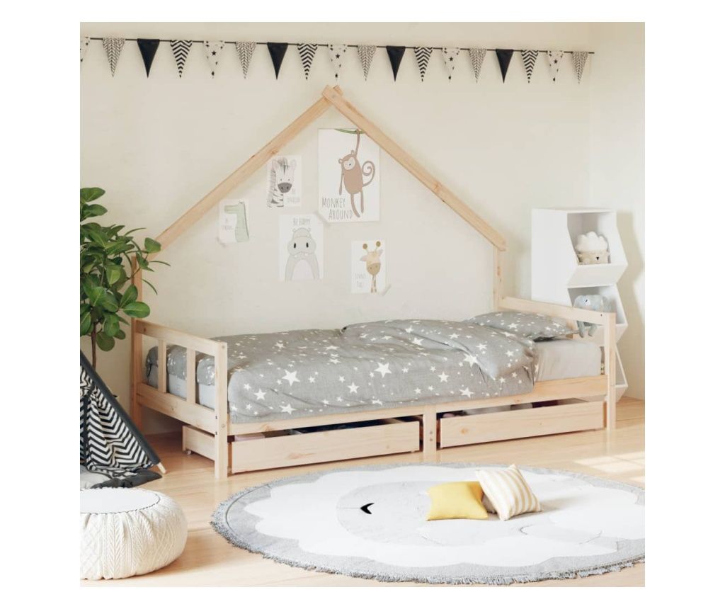 Παιδικό Κρεβάτι με Συρτάρια, 90x200 εκ., από Μασίφ Ξύλο Πεύκου