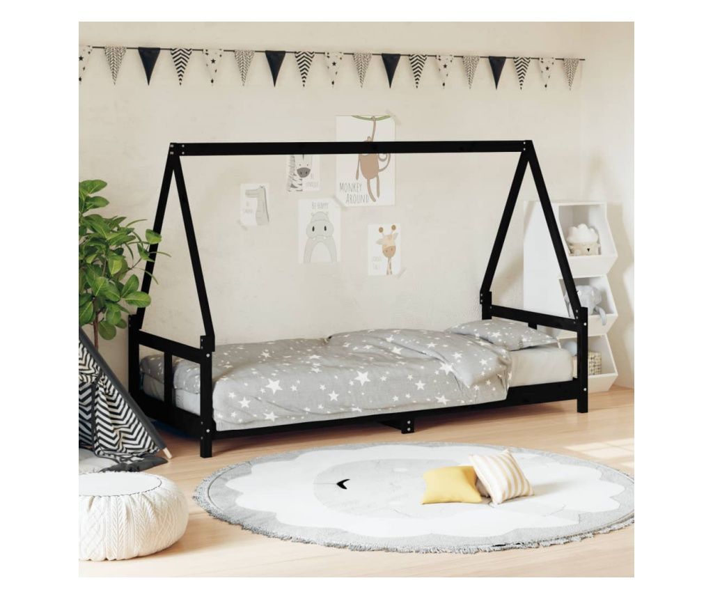 Παιδικό Κρεβάτι Σπιτάκι, Μαύρο, 80x160 εκ., Μασίφ Ξύλο Πεύκου